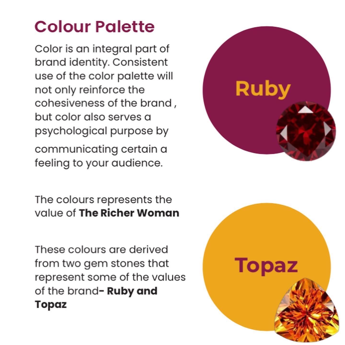 For The Richer Woman brand, the creative brief was based on the elements outlined in the logo. It covered: