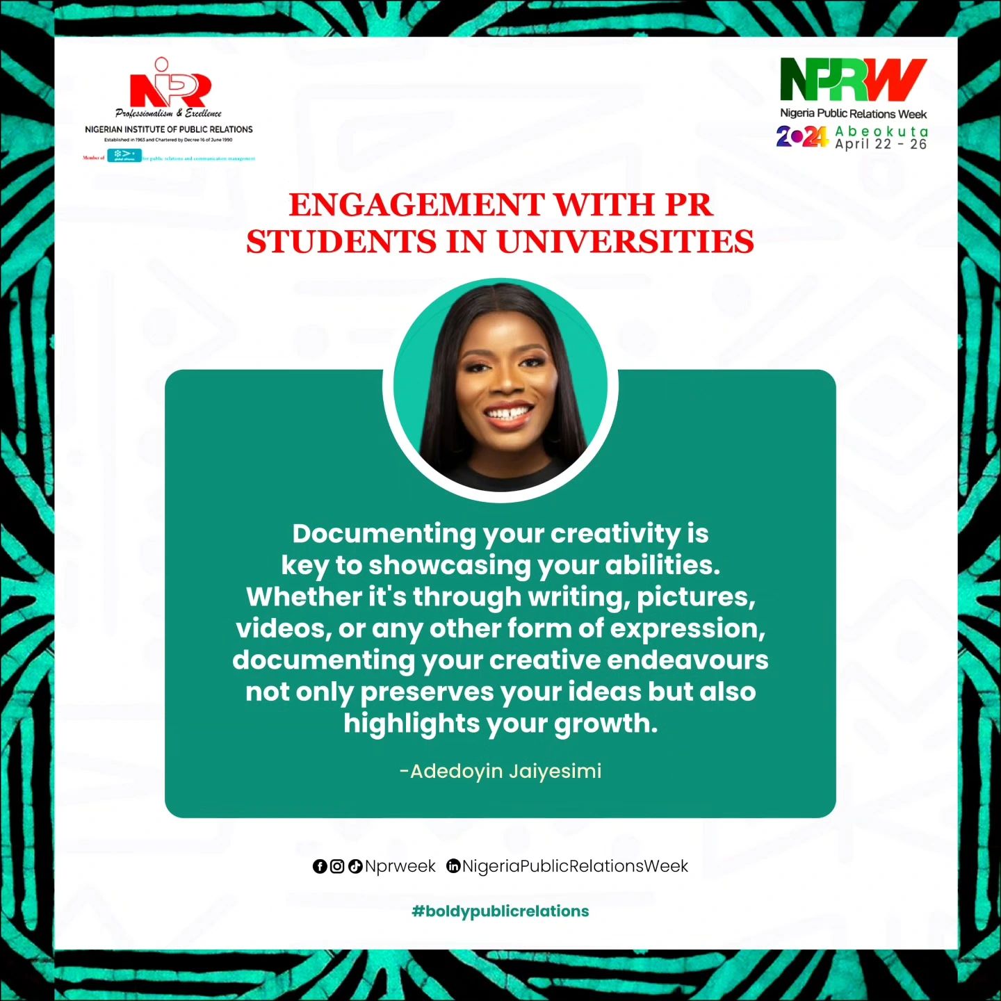 There are more lessons but I will stop here. I am grateful for the opportunity to have been part of the first Nigeria Public Relations Week and I pray that future editions of the NPRW will be even better!